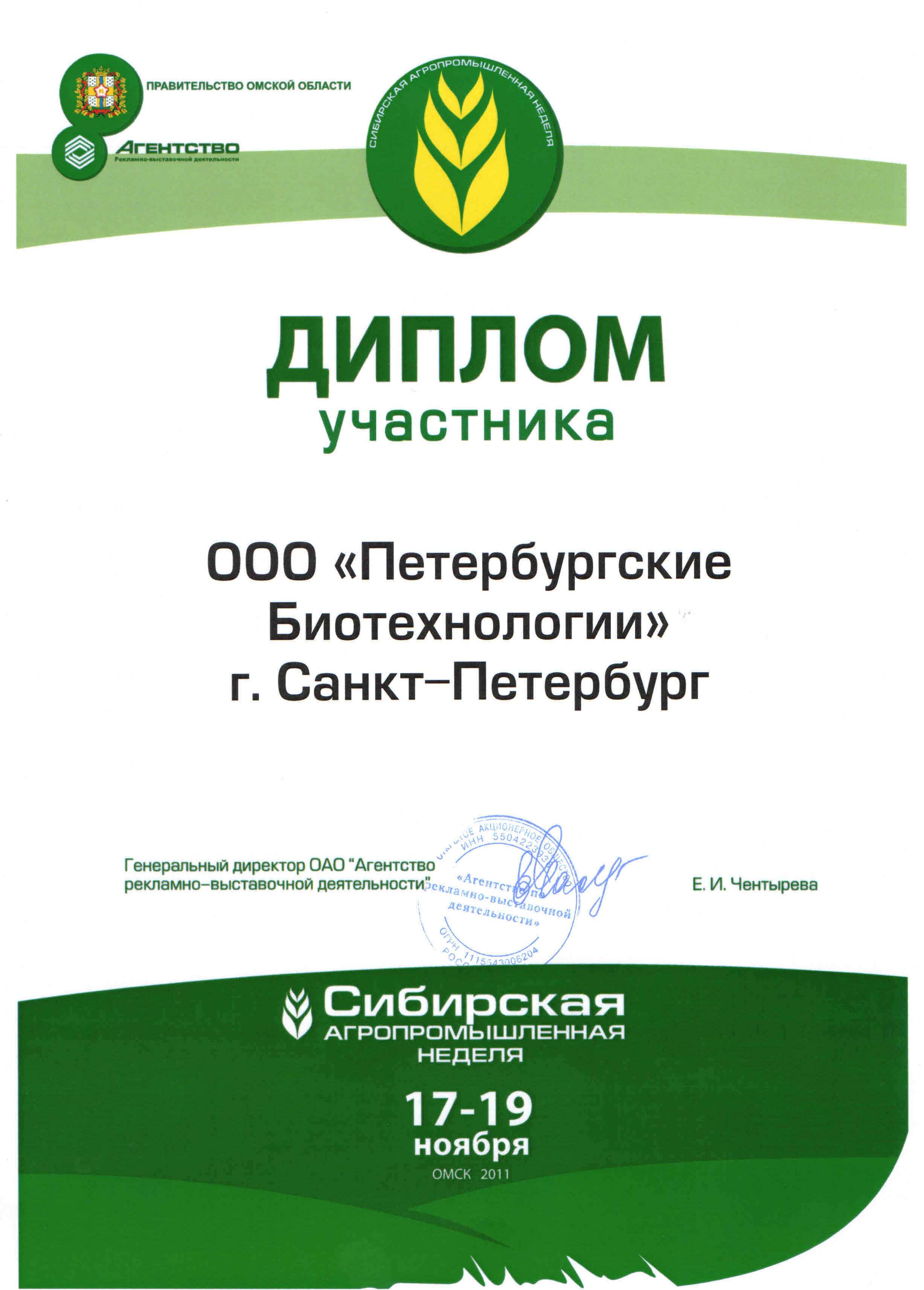 С 17 по 19 ноября Министерство сельского хозяйства и продовольствия Омской области , Агенство по рекламно-выставочной деятельности проводили выставку "Сибирская агропромышленная неделя" - мощный агрофорум Омского Прииртышья. Она стала открытой площадкой для обмена опытом в различных направлениях сельскохозяйственного производства. Наша компания приняла активное участие в работе выставки. Особый интерес у посетителей вызвали биотехнологии возделывания козлятника восточного и сои.