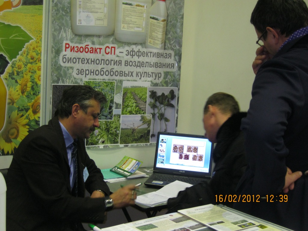 С 14 по 16 февраля в г.Волгоград состоялась выставка "Агропромышленный комплекс 2012". Наша компания приняла в нейактивное участие. Ризобакт СП вызвал большую заинтерисованность сельхозпроизводителей работающих по нано-технологиям. Участие в выставке дало прекрасную возможность новых контактов. Общение с участниками и гостями выставки, придало нам уверенность в правильности нашего пути.